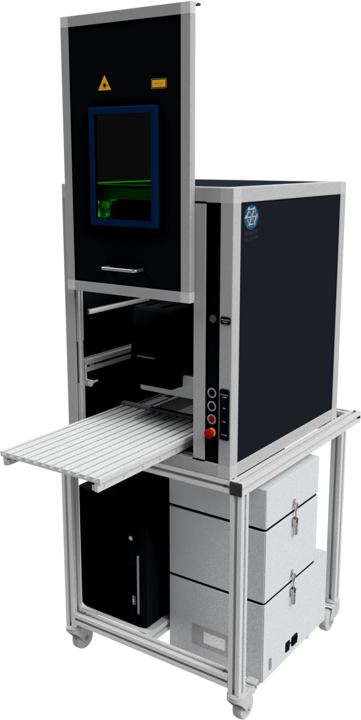 - Laserschutzbox als Tischgerät mit komplett integriertem Laser